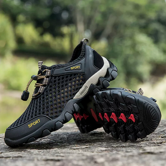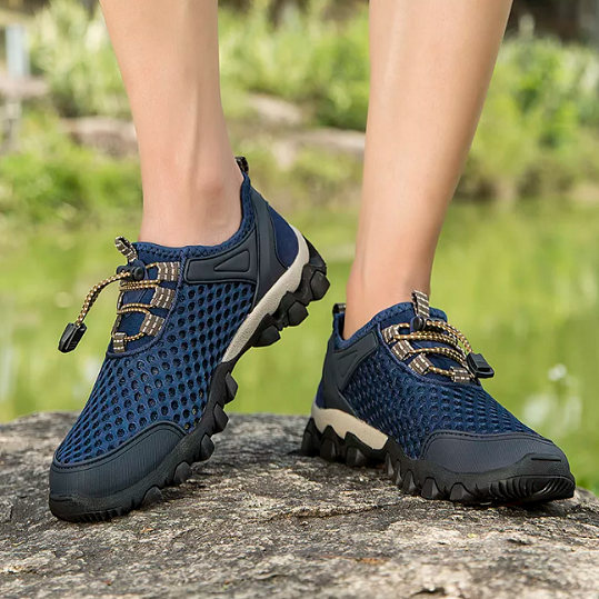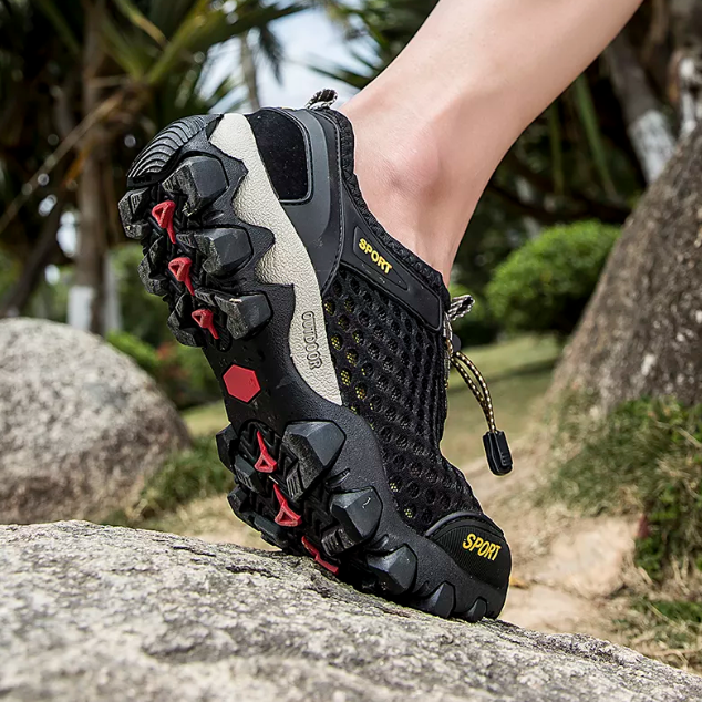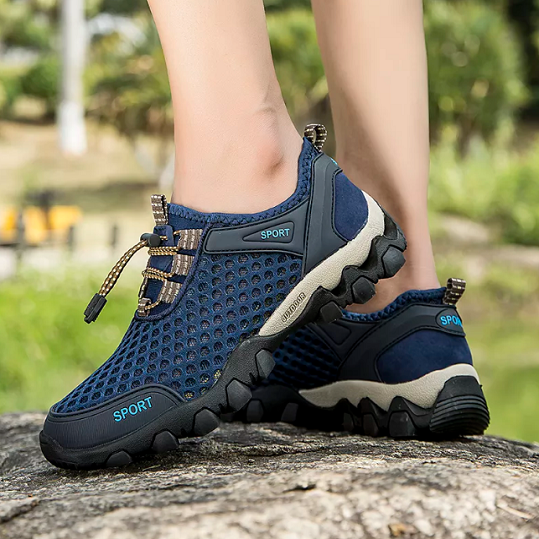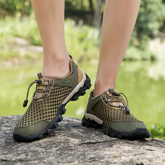 Stay dry with our Waterproof Shoes mesh materials. They're fully water-resistant with holes designed to drain water with every step. Traverse rivers & creeks comfortably.